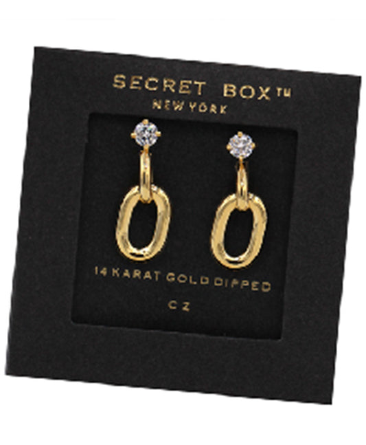 14K Gold Dip Twisted Tear Drop CZ Huggie Earring