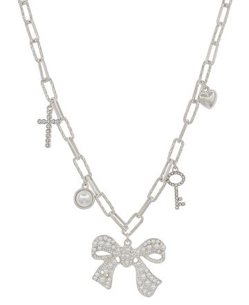 Ribbon w/ Multi Charm Texture Chain Necklace